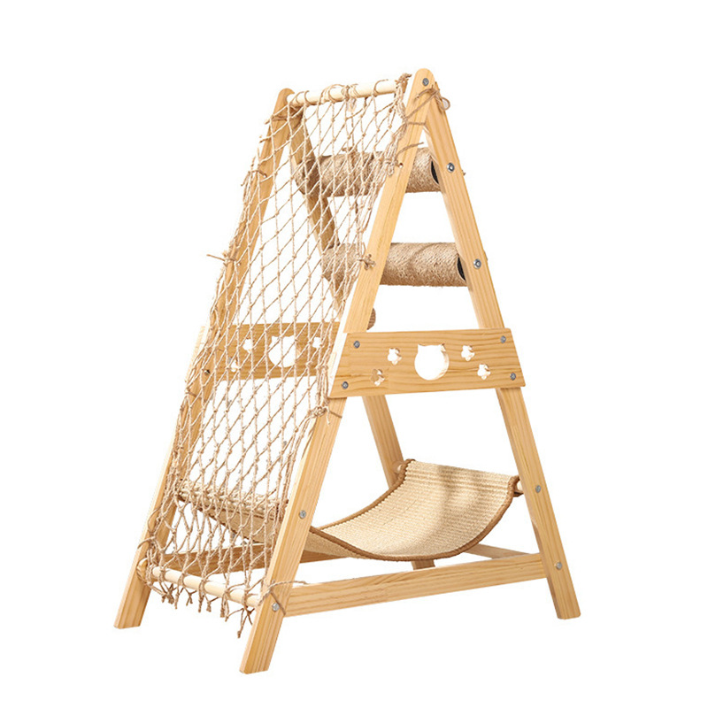 多機能天然木耐久性抜け毛防止一体型キャットタワー