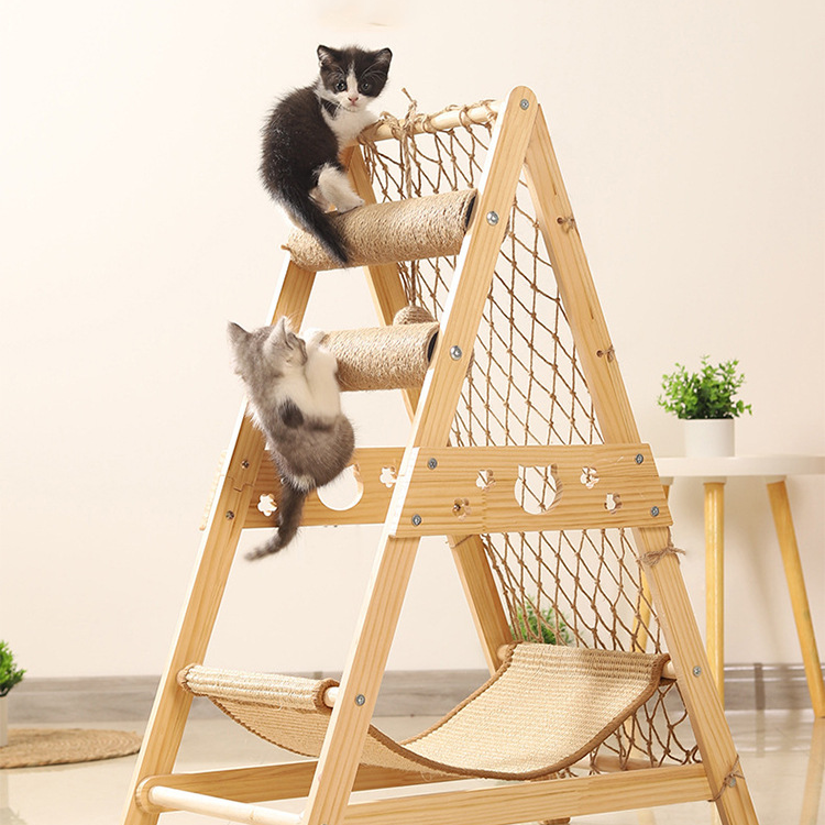 多機能天然木耐久性抜け毛防止一体型キャットタワー