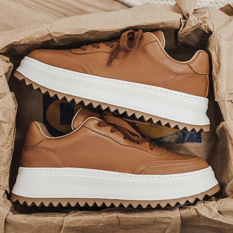 高級メンズヴィンテージホースレザーカジュアルシューズ 厚底通気性スニーカー